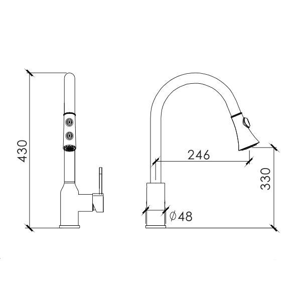• Pull out hose: Provided